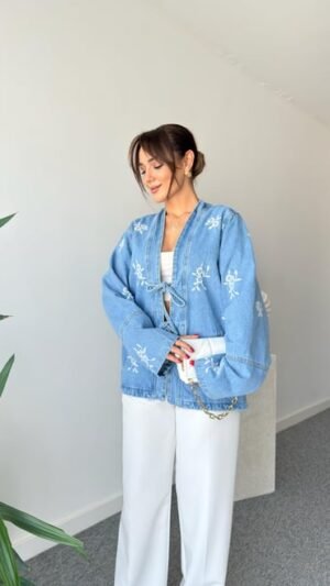 Embroidered Detailed Tie-Down Denim Jacket