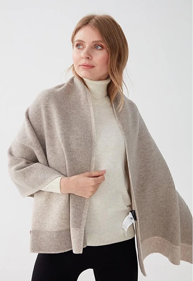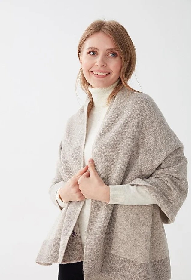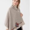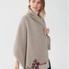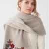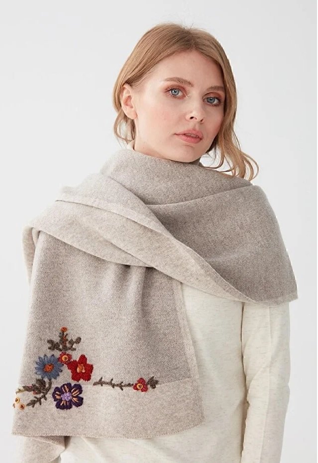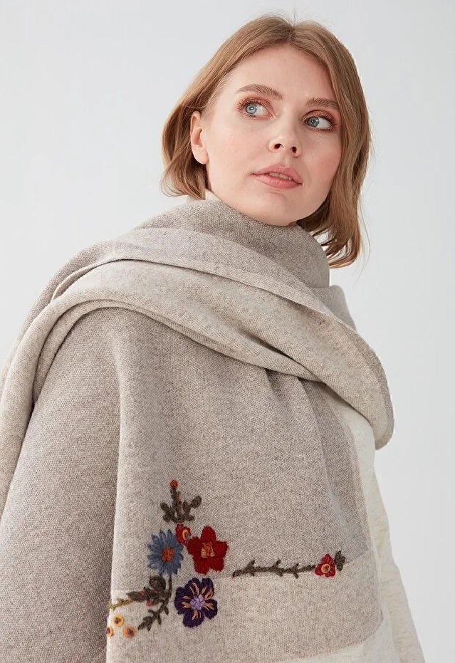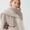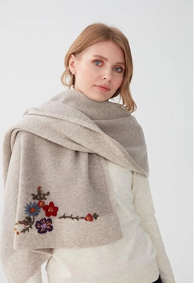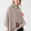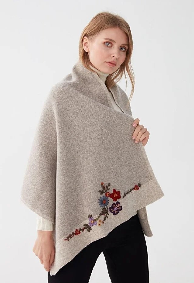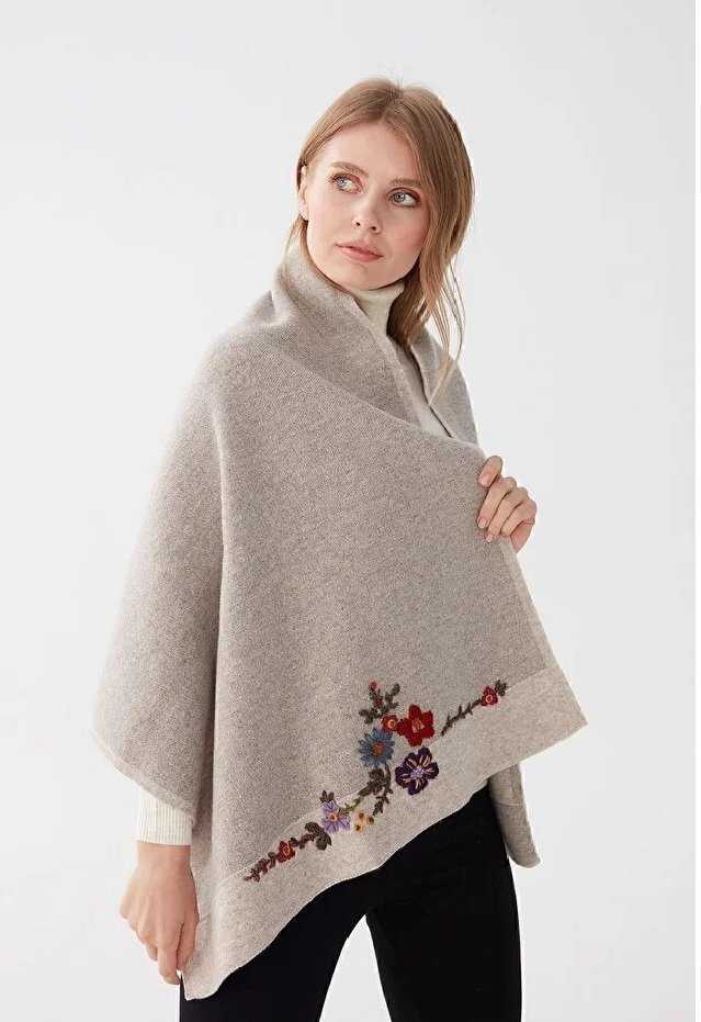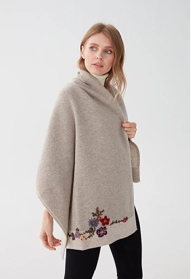 Women’s Flower Embroidered Knitwear Shawl V.beige