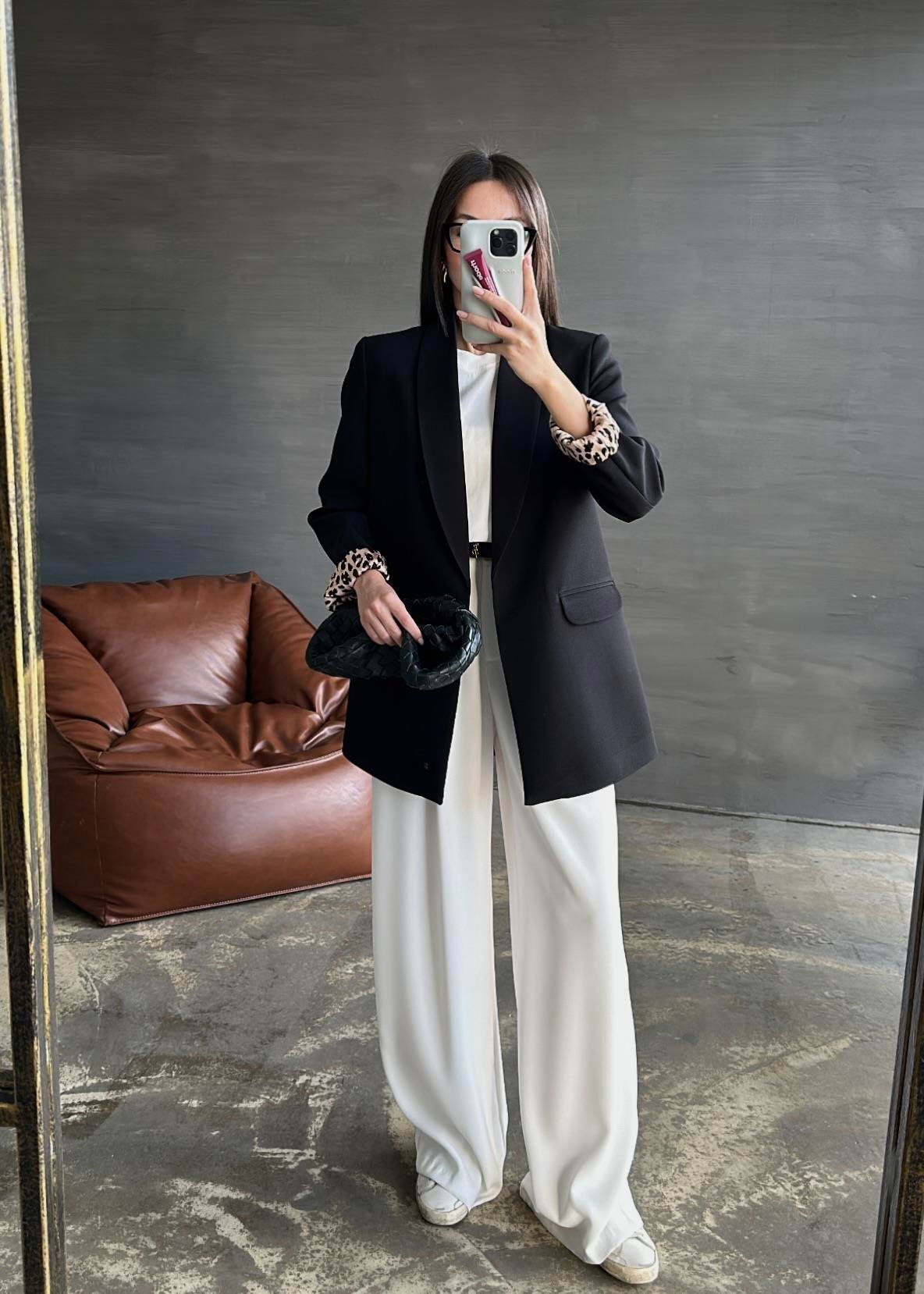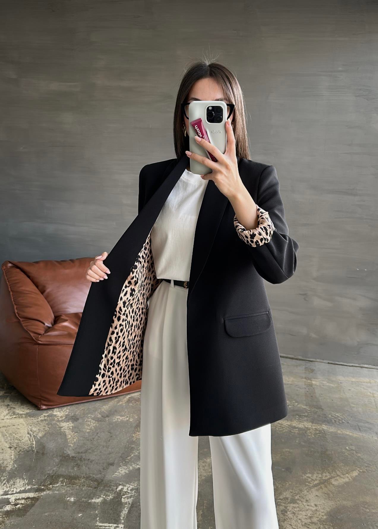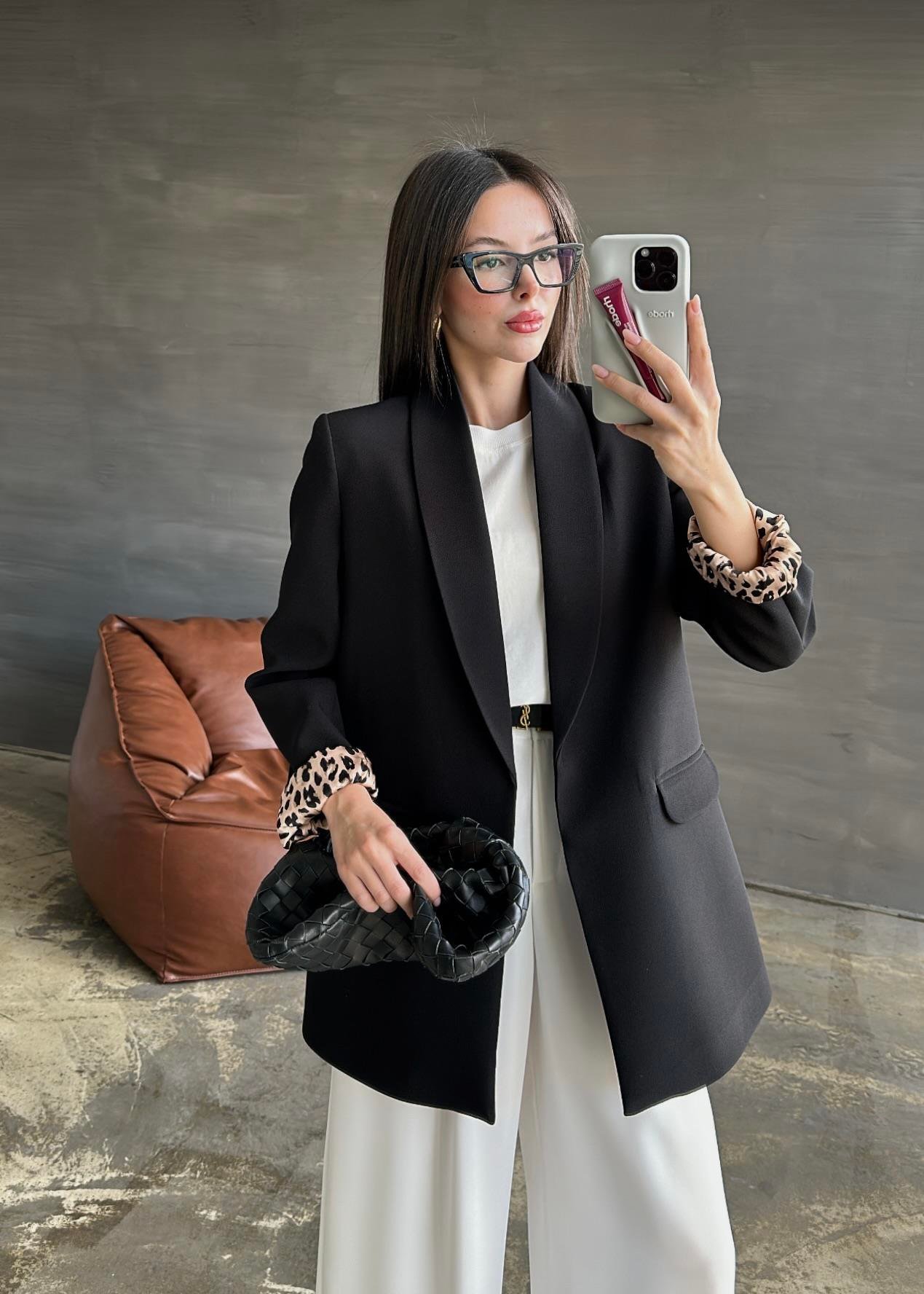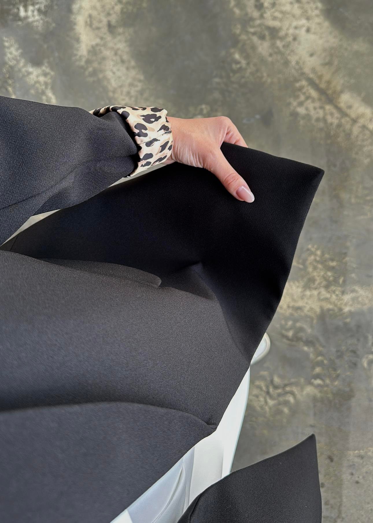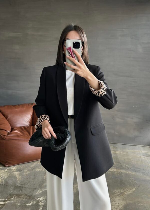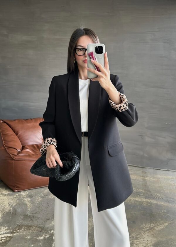 BLACK Shawl Collar Leopard-Lined Jacket