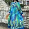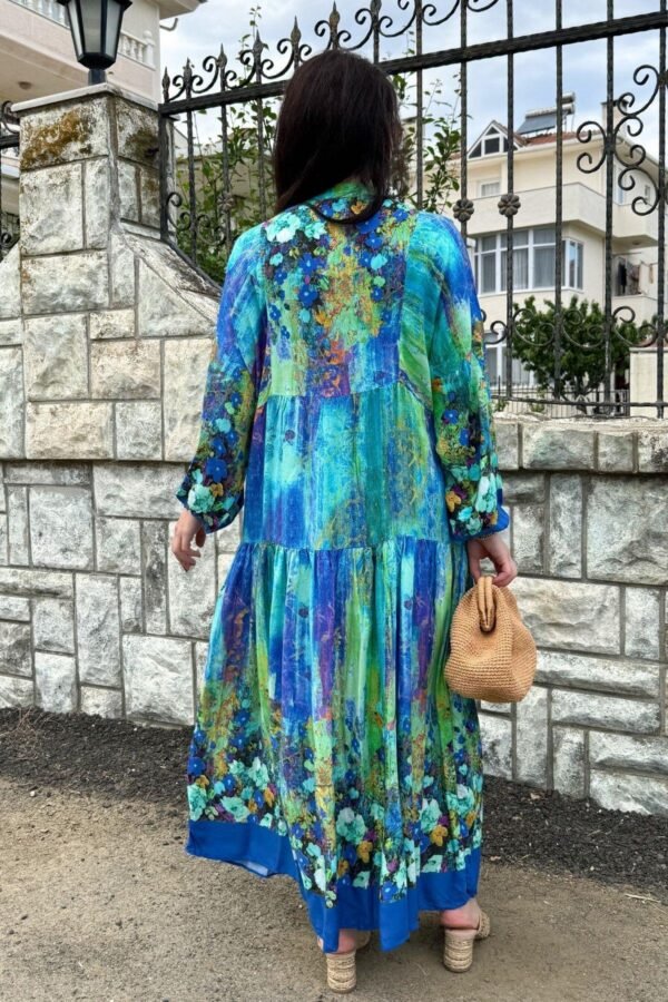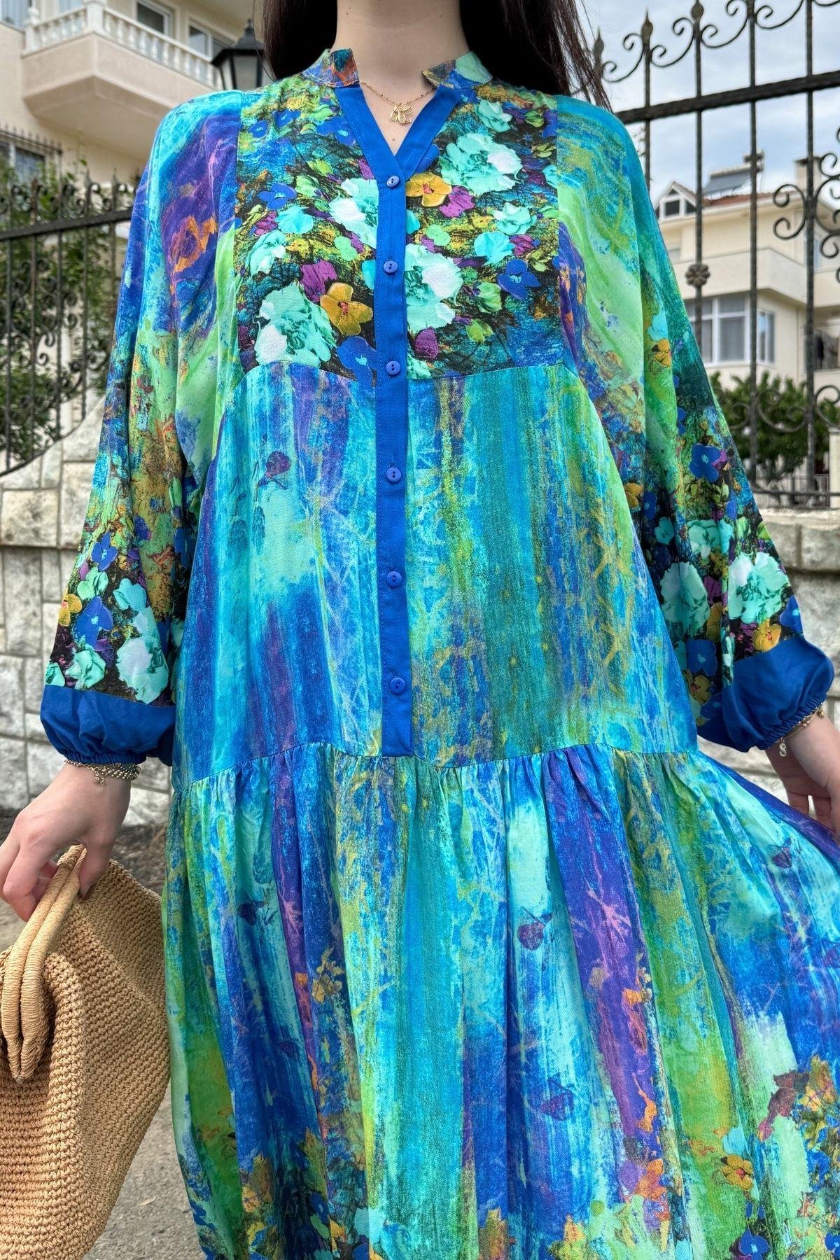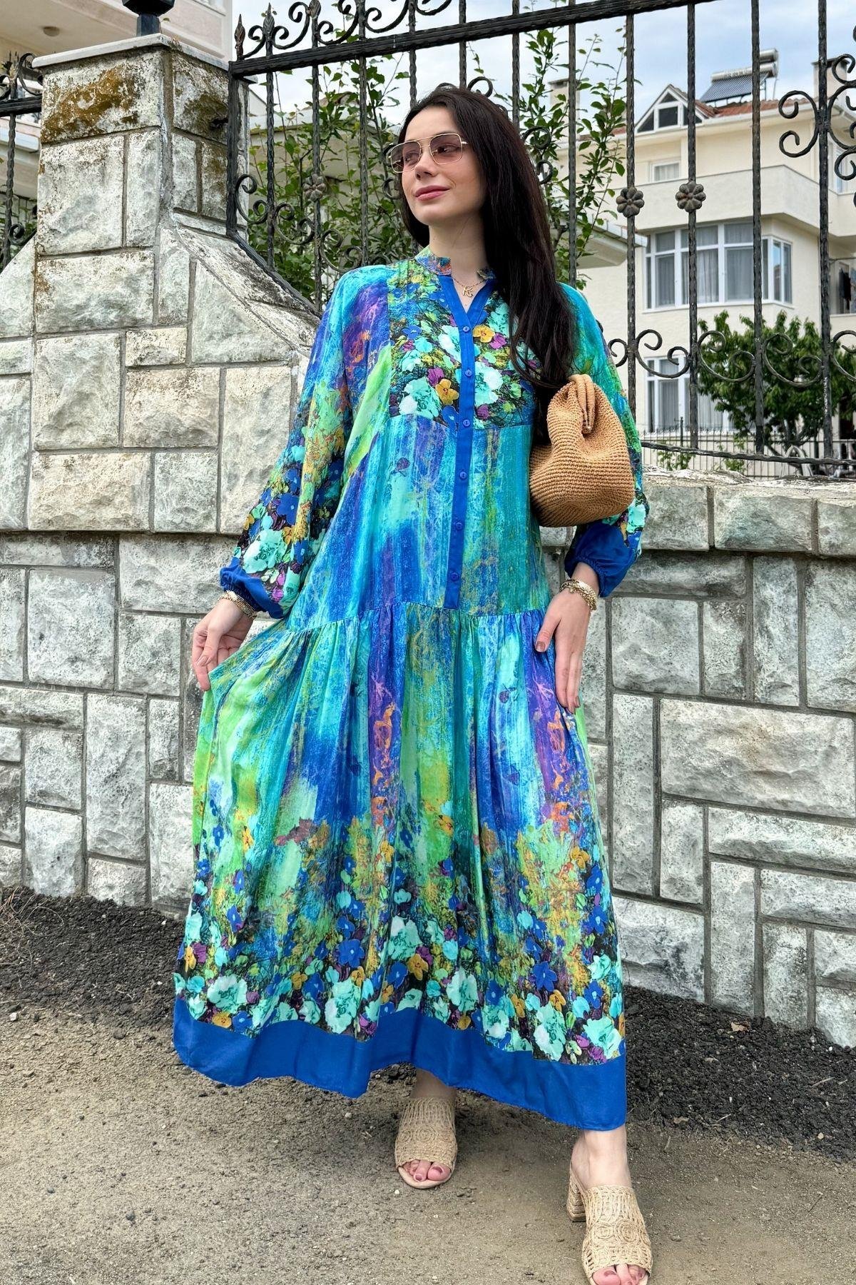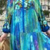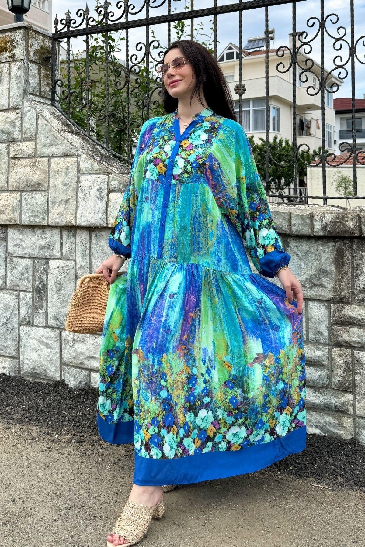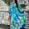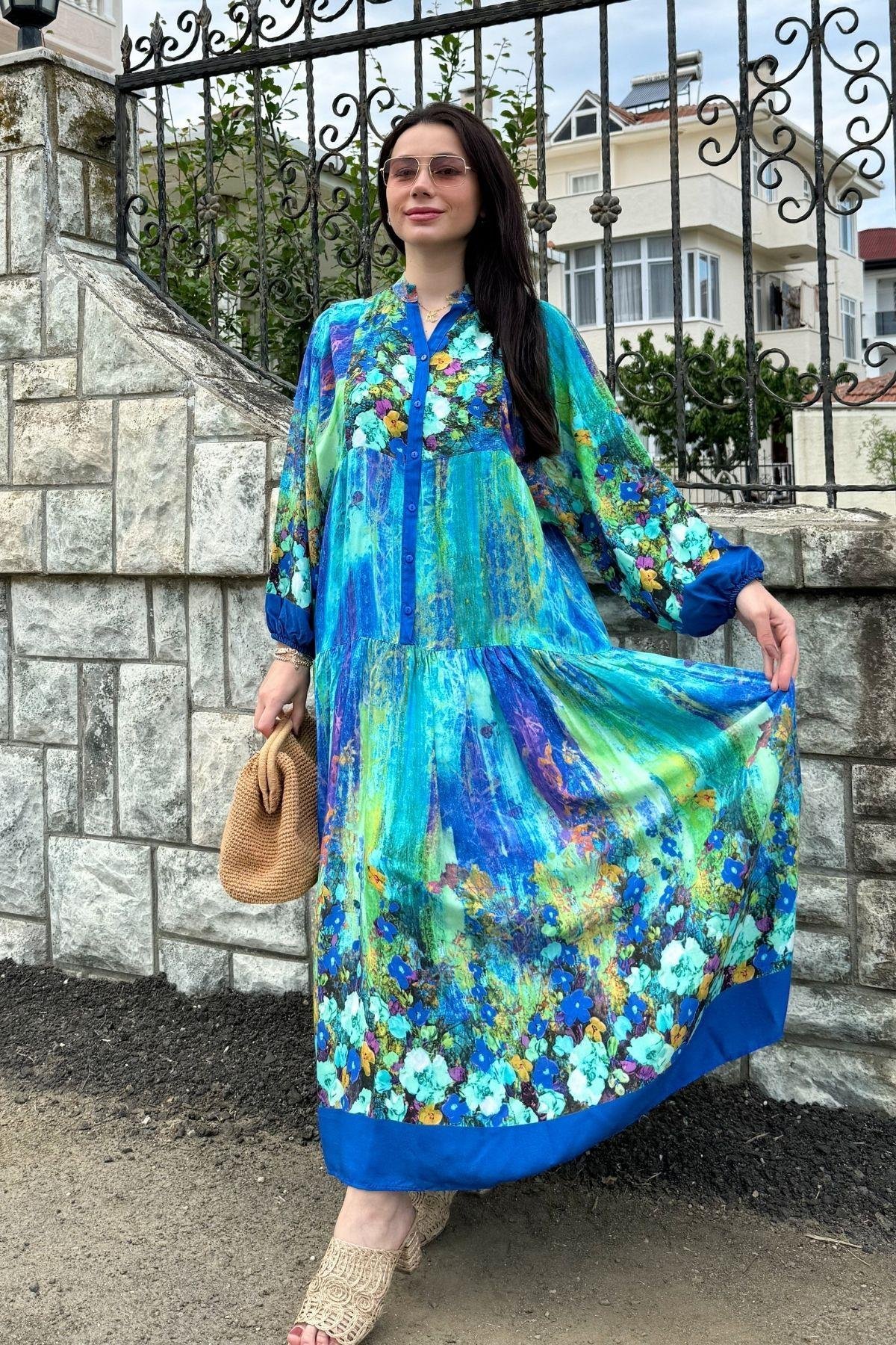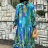 Blue Color Flower Pattern Viscose Dress