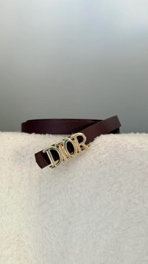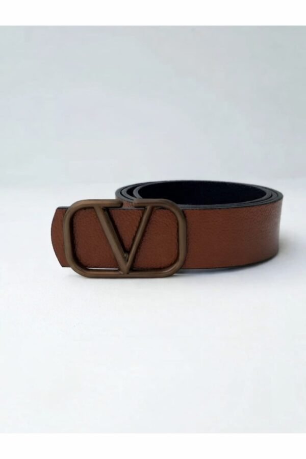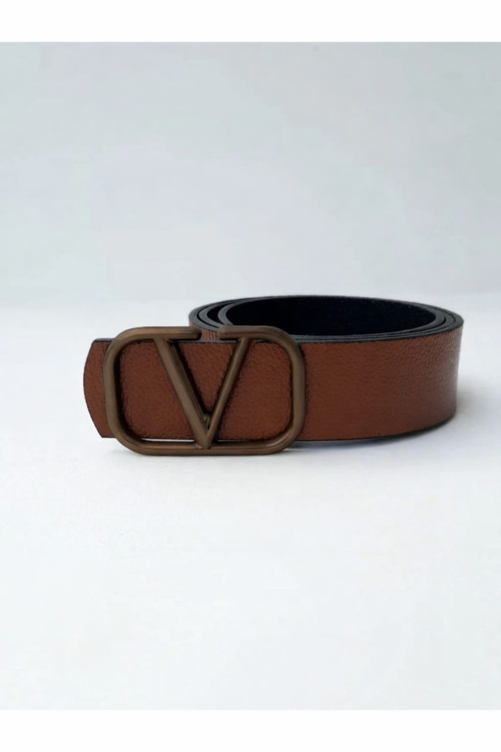 Classic Brown Leather Belt with Bronze V-Logo Buckle