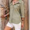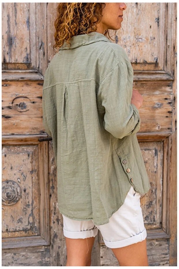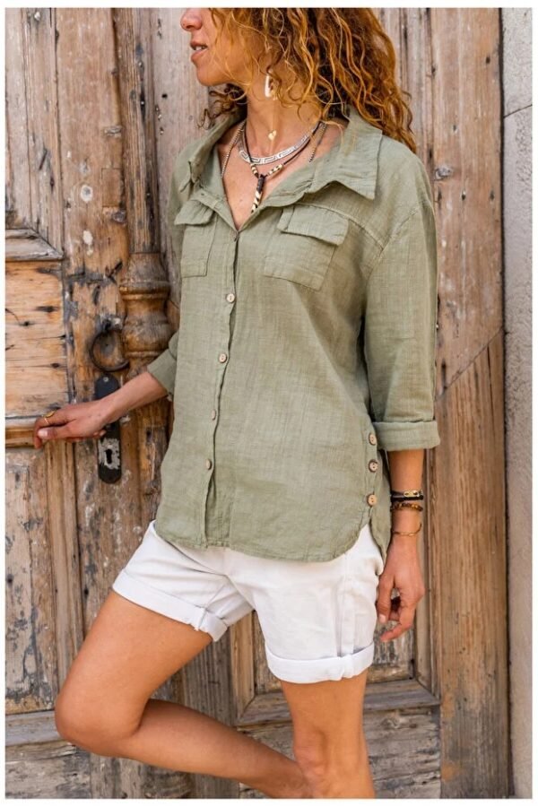 DOUBLE POCKET SAGE GREEN BLOUSE