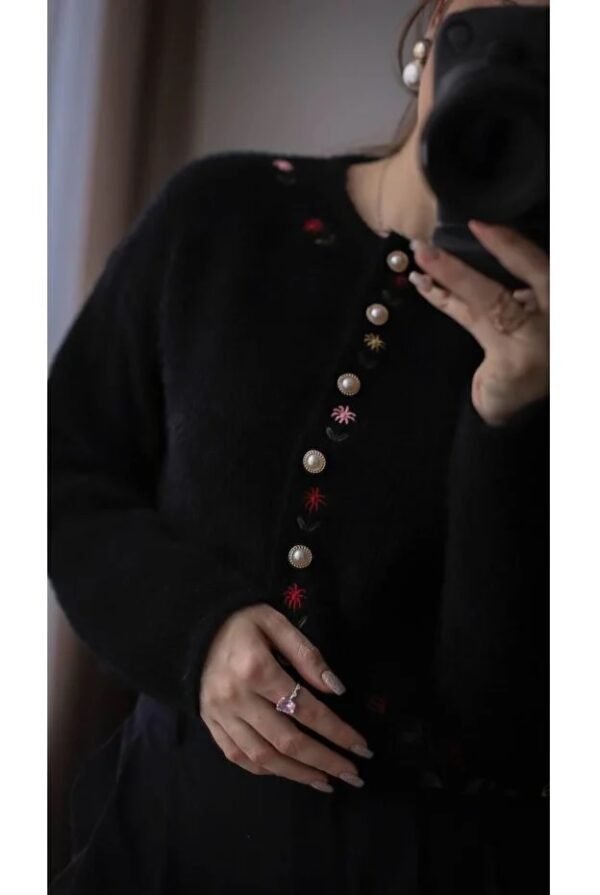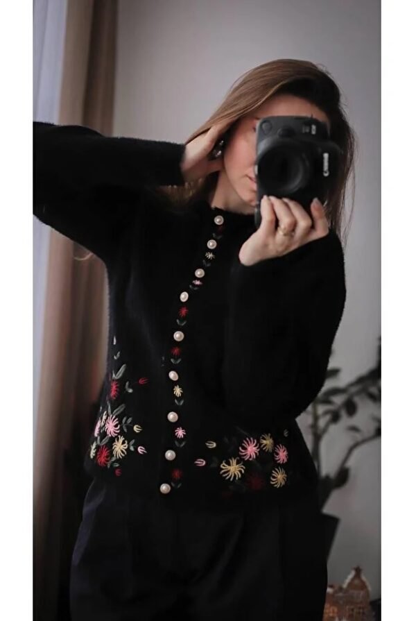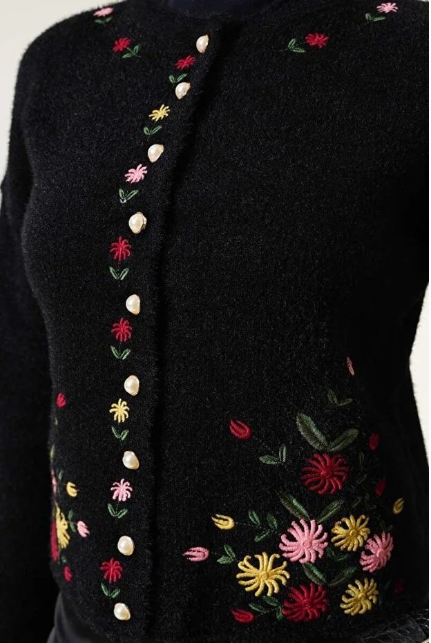 Floral Embroidered Pullover with Pearl Buttons