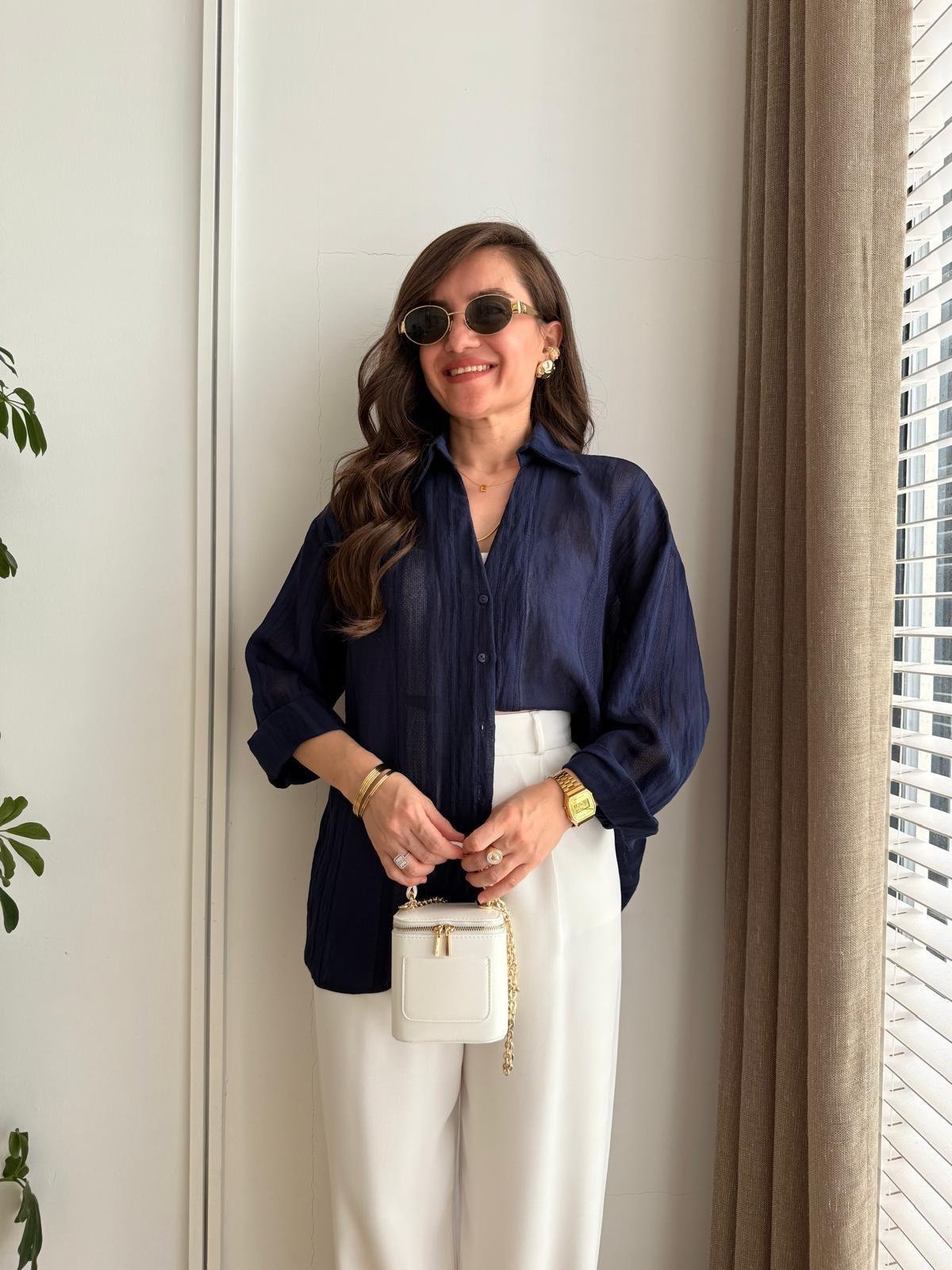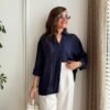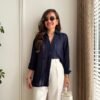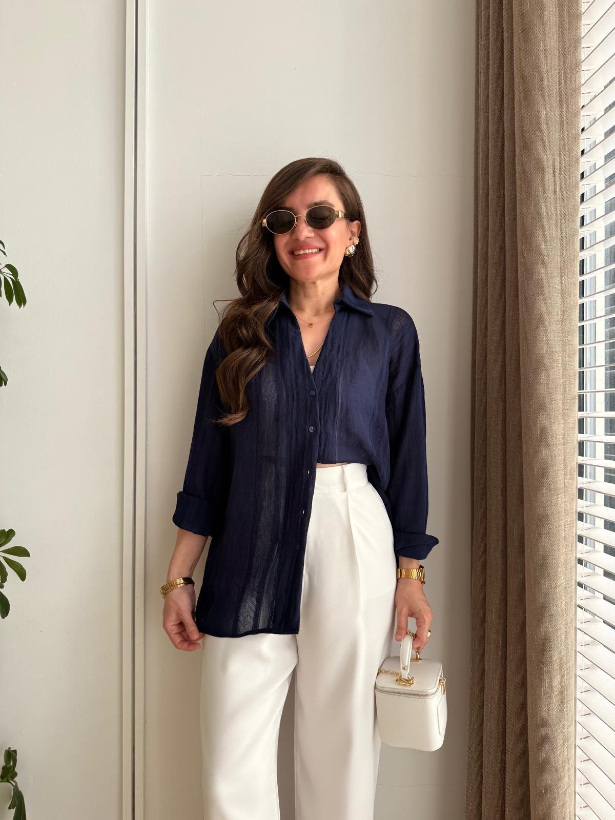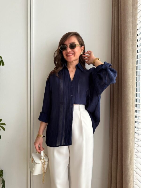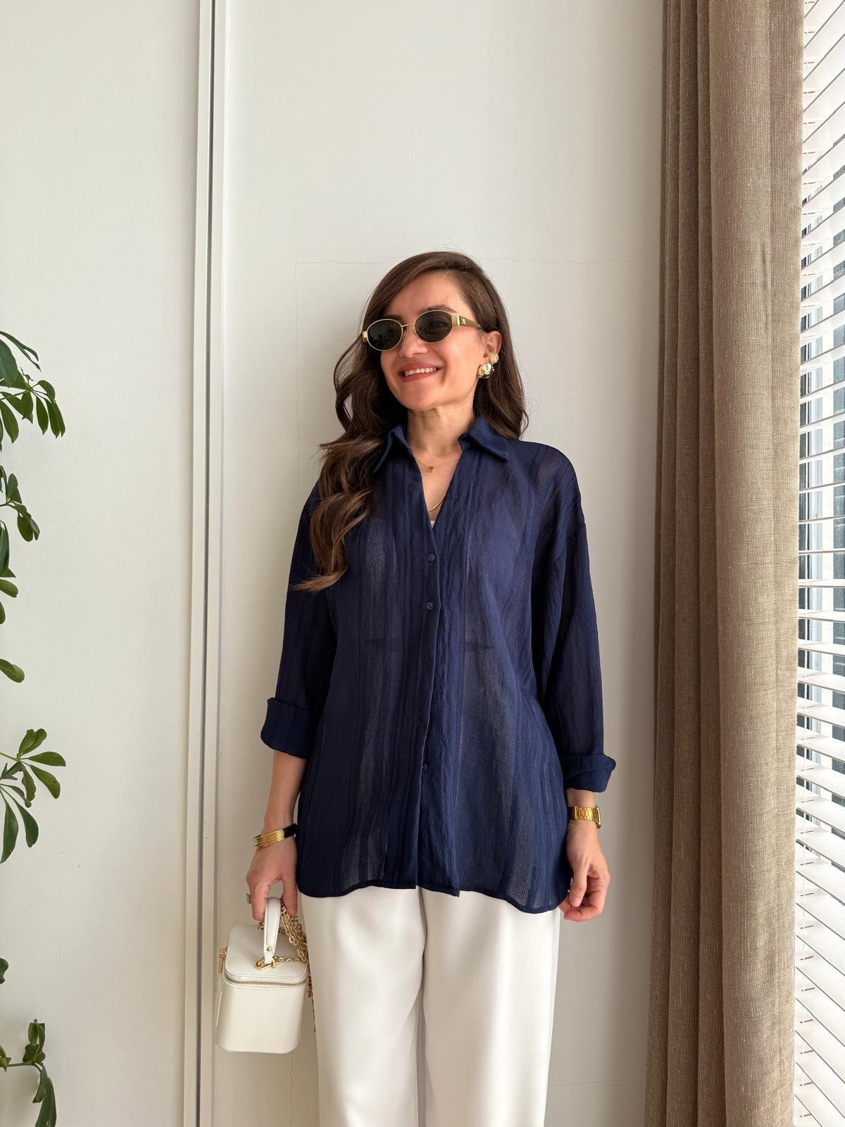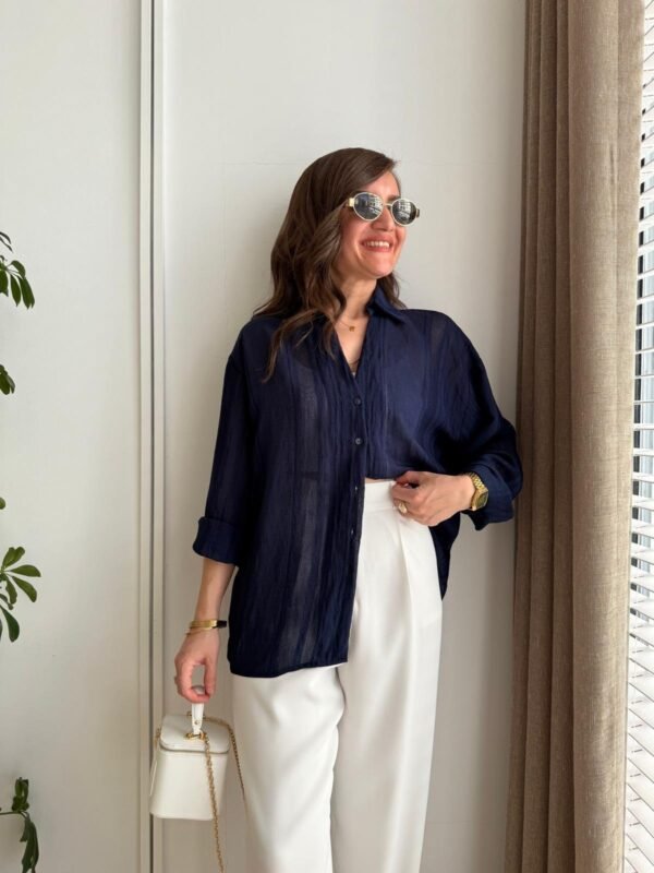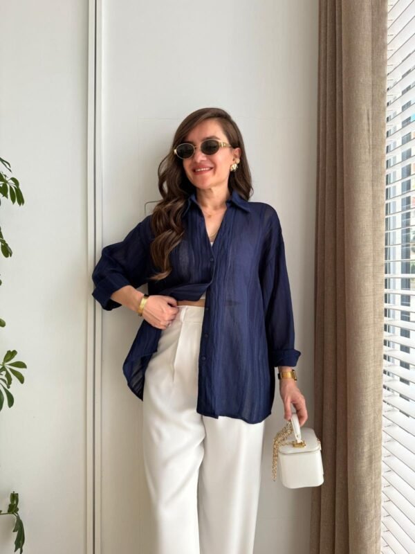Navy Blue Transparent Oversize Shirt