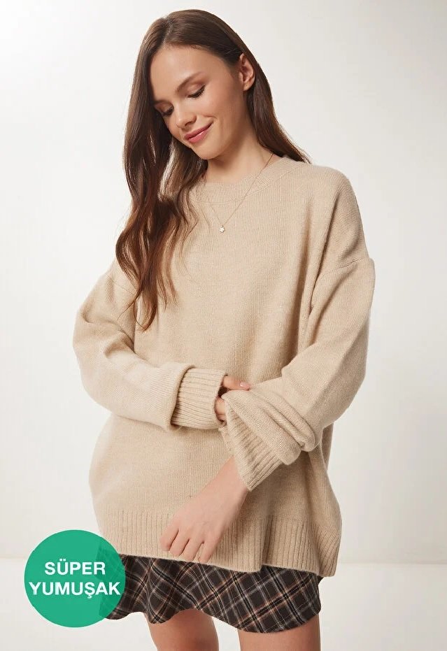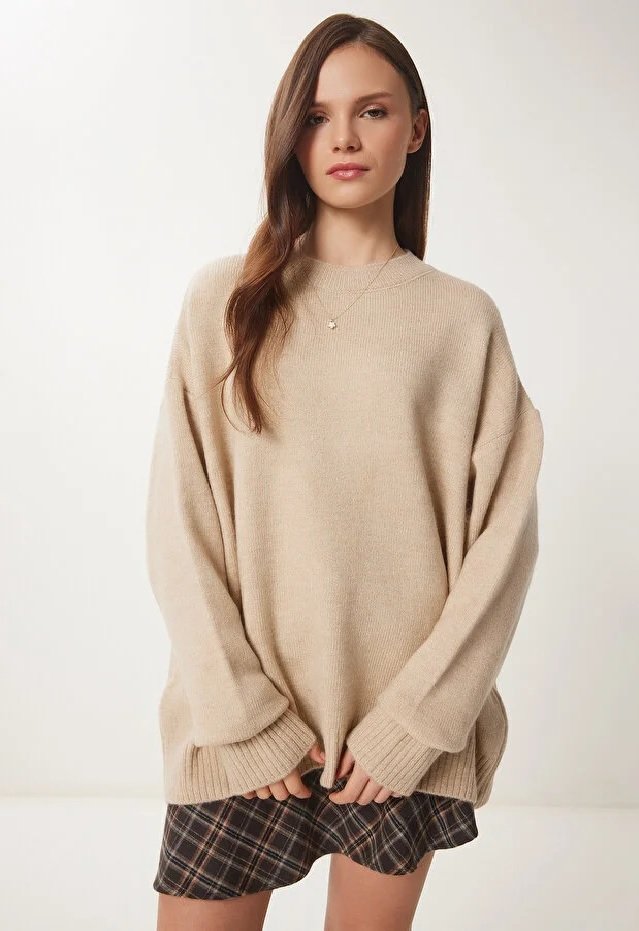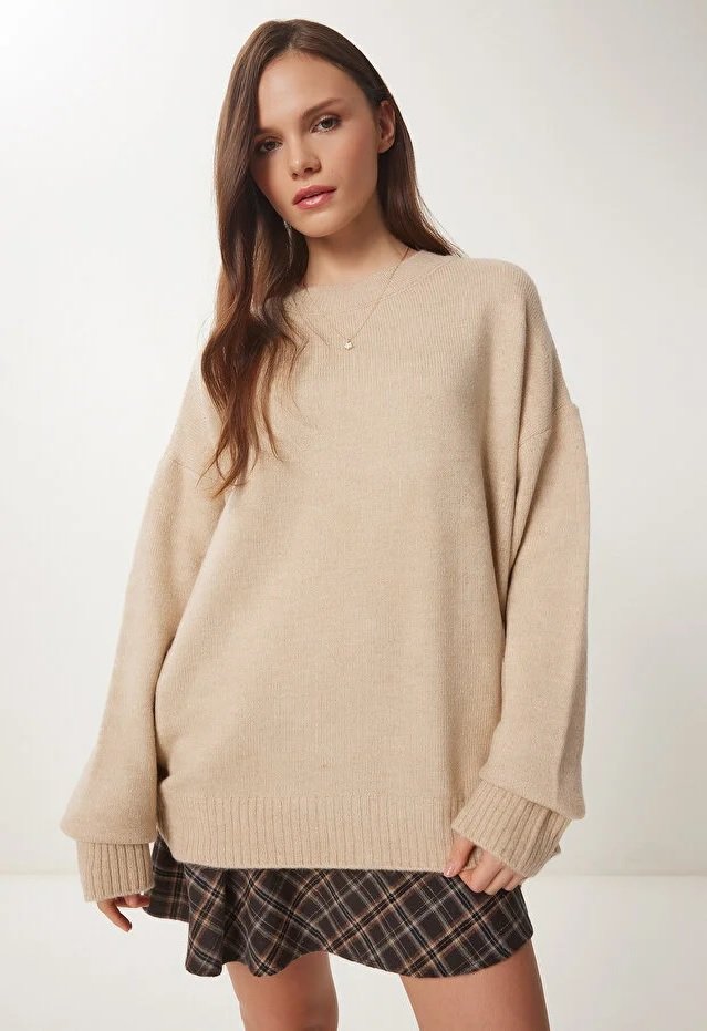 Crew neck, dropped shoulder, stretchy, soft-textured knit Pullover
