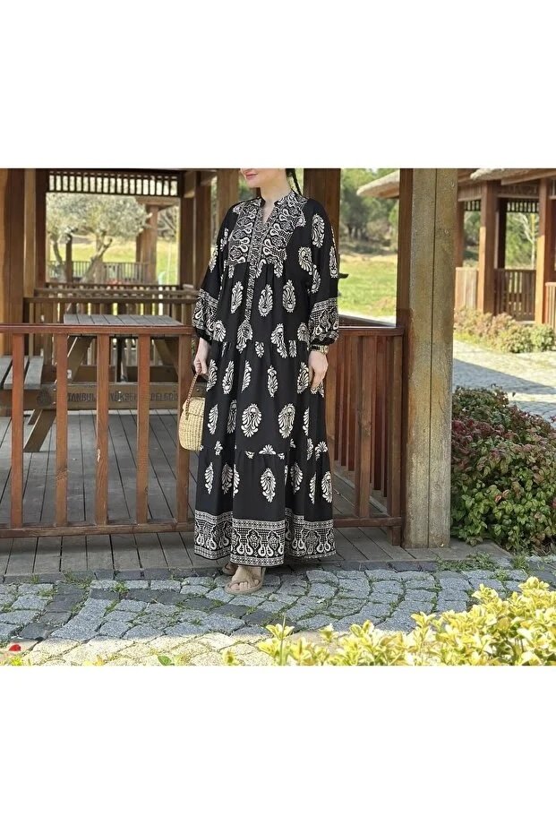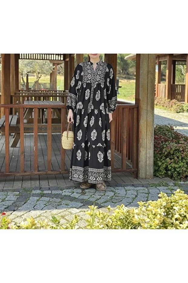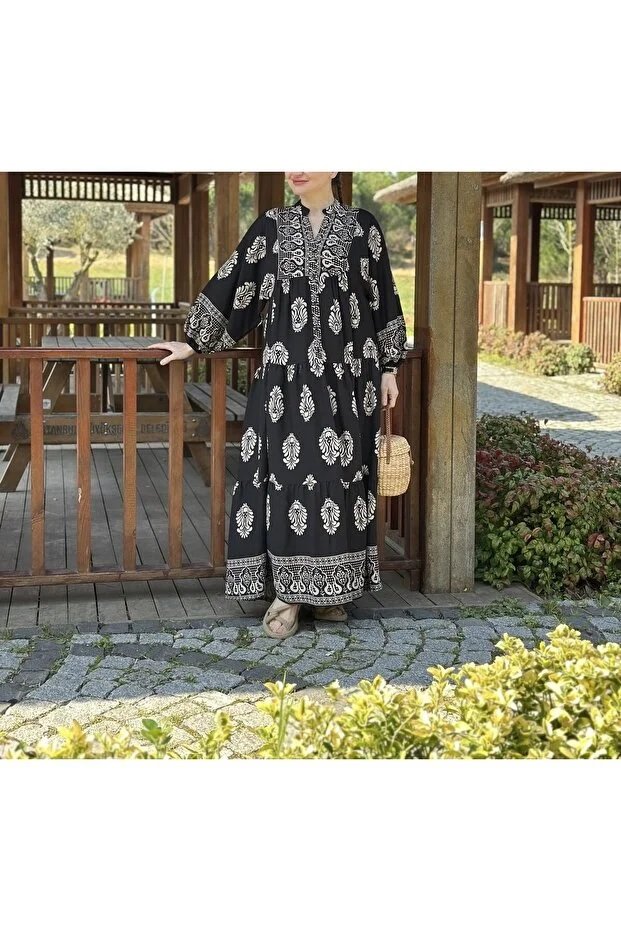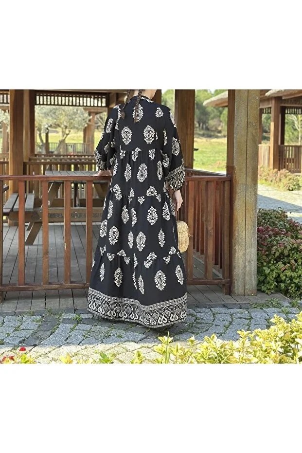 Viscose Authentic Pattern Black Dress