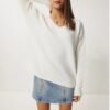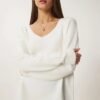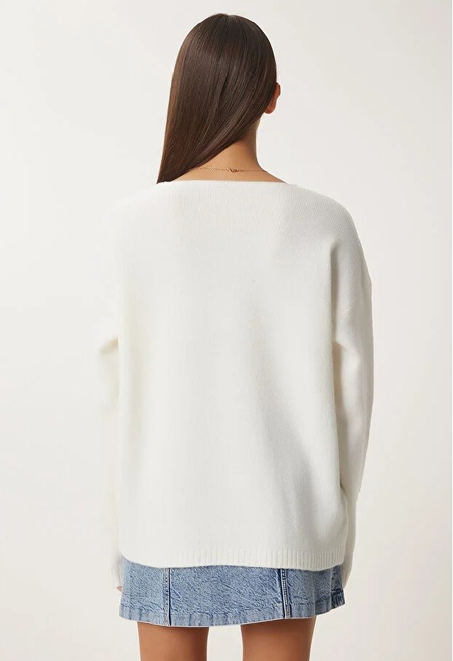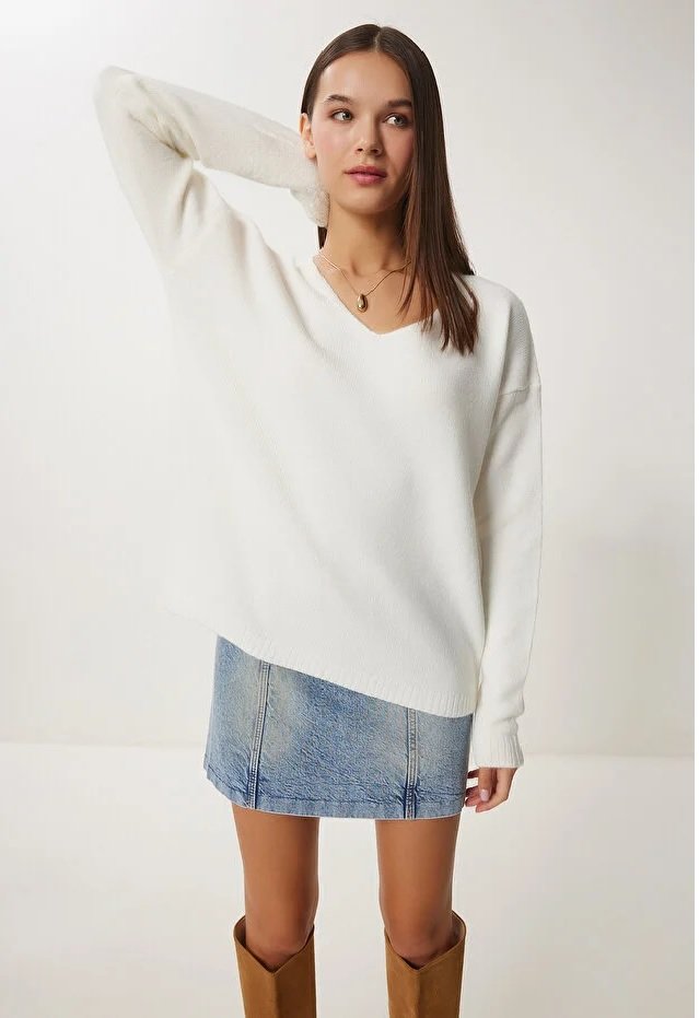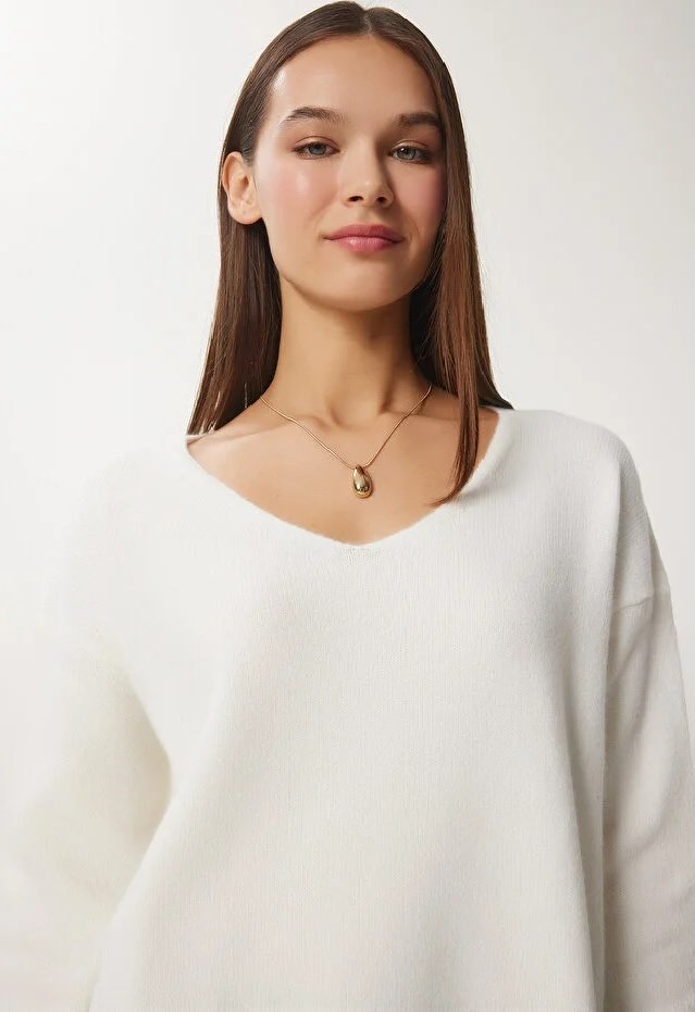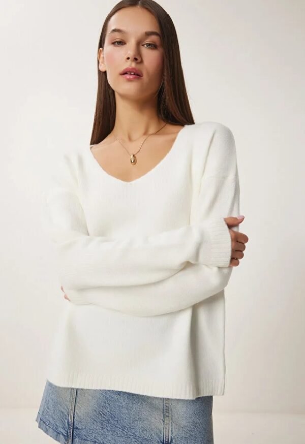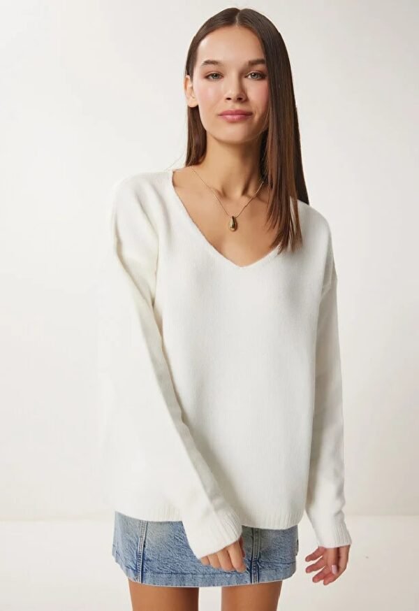 This V-neck knitted sweater offers a comfortable and stylish design, ideal for everyday wear.