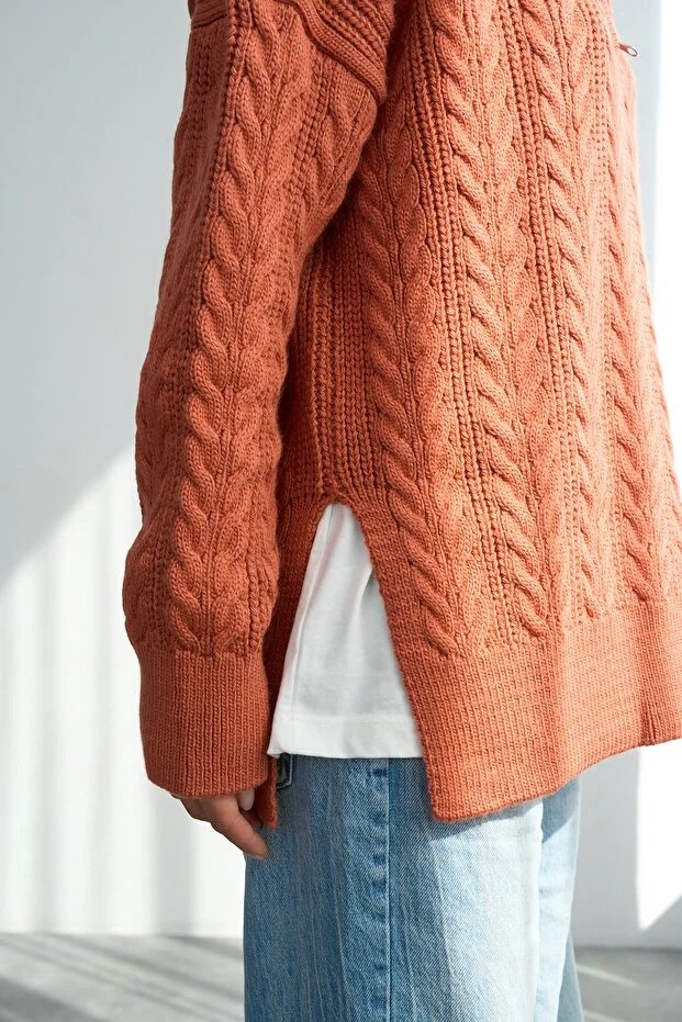 Women’s Orange Oversized Cable-Knit Zip-Collar Sweater