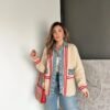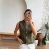 Long Gold Buttoned Blazer Jacket Green