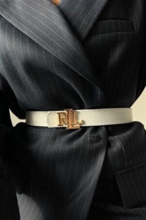 RLL Buckle Detailed Plain Faux Leather Belt WHITE