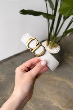 Elegant Beige Belt with Gold “CD” Buckle