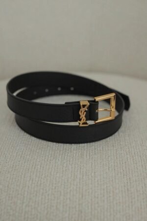 Women’s Slim Leather Belt with Gold Bridge Buckle